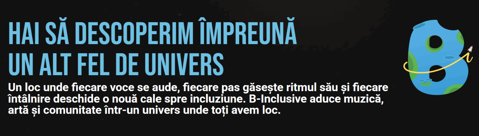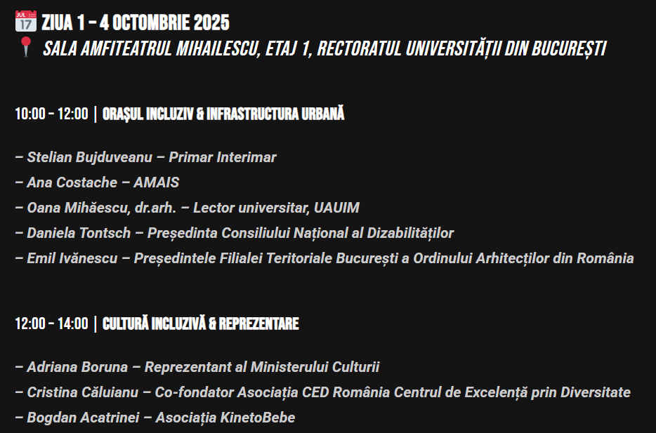 Festivalul B-Inclusive începe pe 3 octombrie 2025, cu un workshop interactiv organizat împreună cu European Accessibility Resource Centre AccessibleEU România, o oportunitate de a explora accesibilitatea din perspective internaționale, europene și locale. Participanții vor discuta cu experți, vor descoperi bune practici și vor împărtăși propriile experiențe, creând un spațiu real de dialog și colaborare.